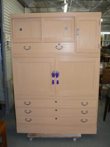 日本に古くからある桐のタンスは古くなっても「洗い」と呼ばれる方法できれいになります。昔は嫁入り道具として「火事で燃えにくく、洪水でも中に水が入らない」といわれましたが現在の家では炎の温度が違うため燃えてしまいます。しかし、実際に火事にあった桐のタンスの修復もしたことがあります。それほど、桐のタンスは丈夫で親子にわたって引き継がれていくタンスです。もし、ご自宅やご実家に古い桐のタンスがありましたら直してみませんか?料金は1棹(2段積み)¥100,000。3段積みは¥150,000となっています。(基本価格)お問い合わせはメールもしくはお電話で!出張見積もりもできます。